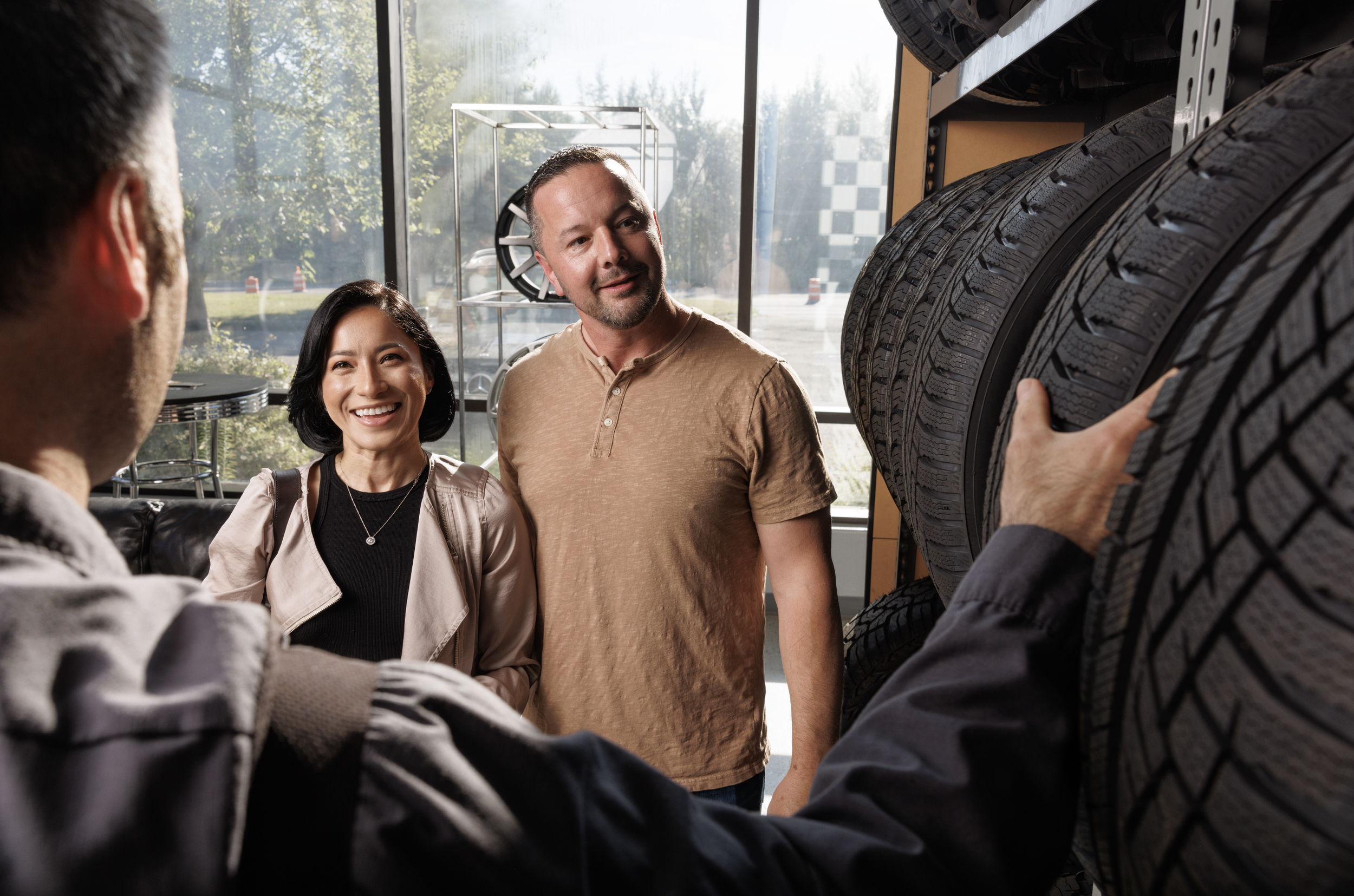 Rotation, balancing, pressure checks, flat repair, replacement, alignment.